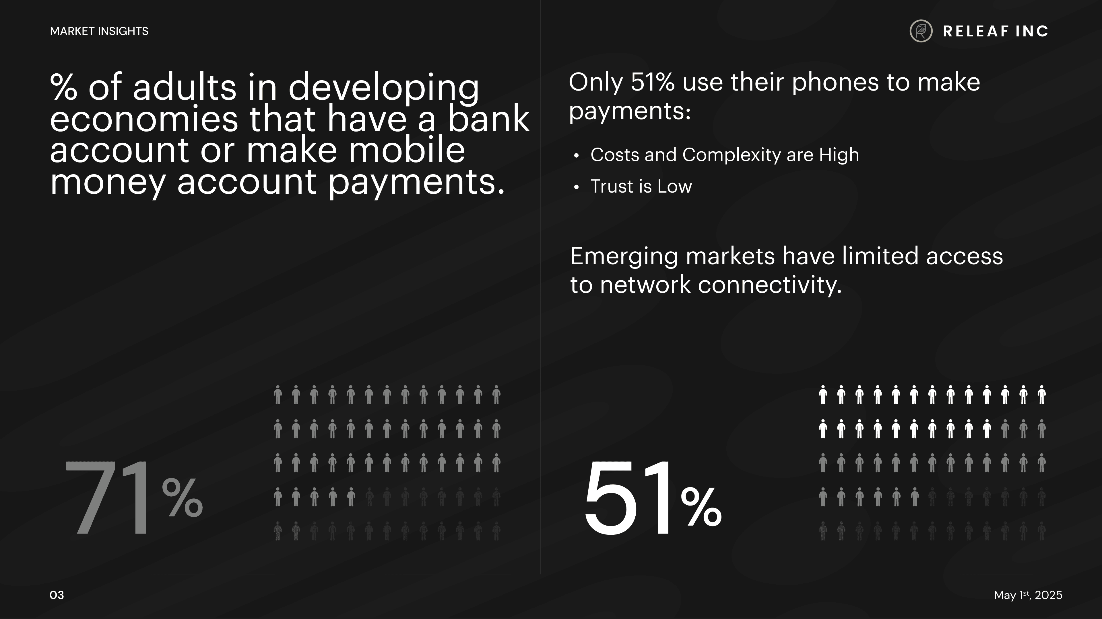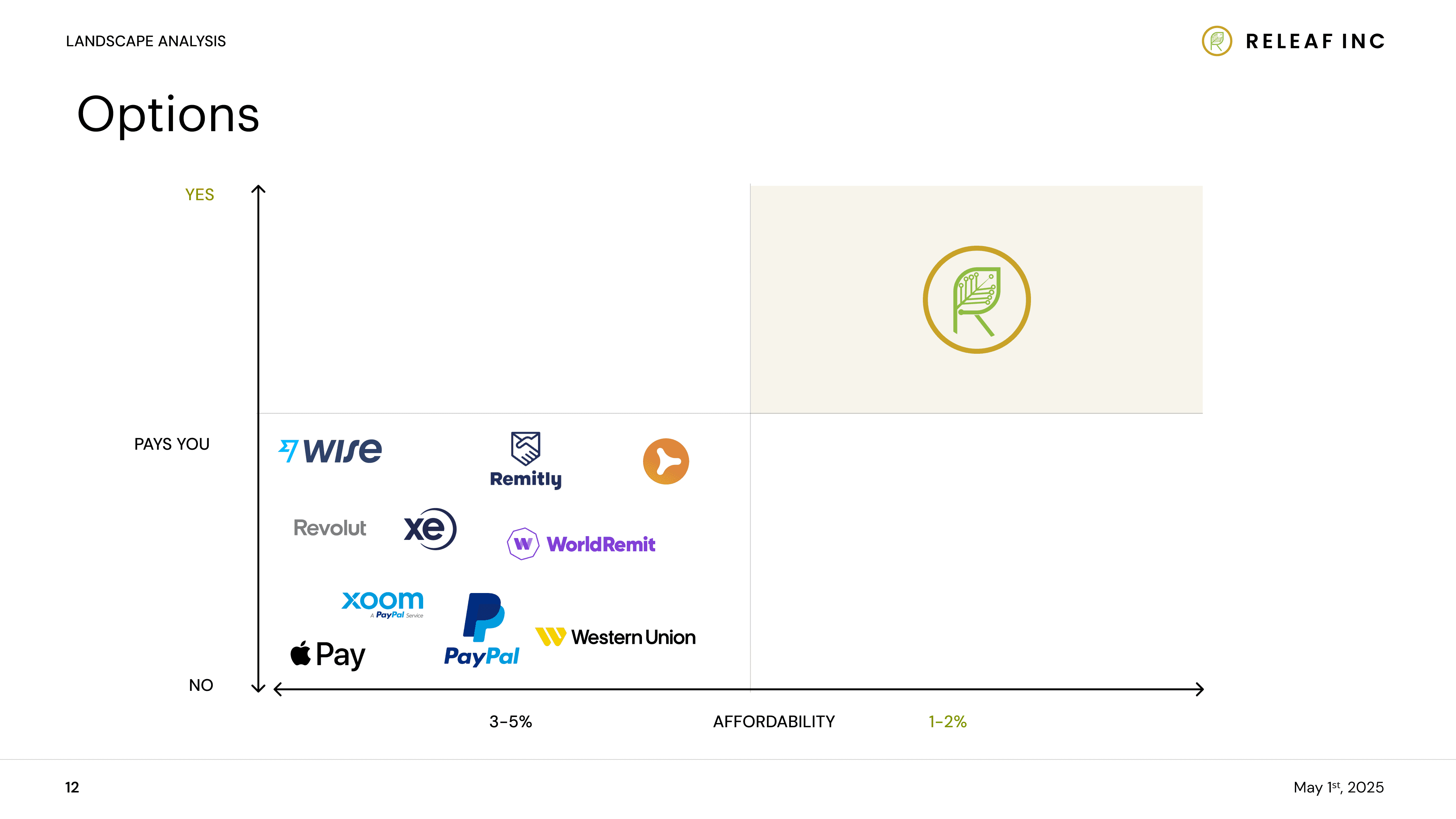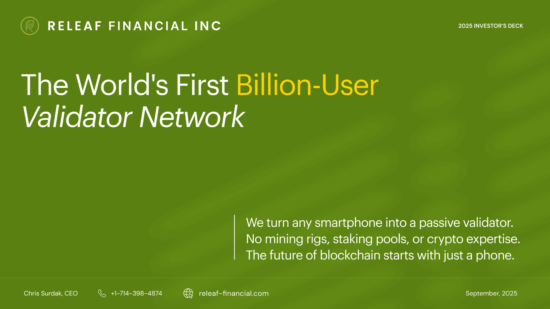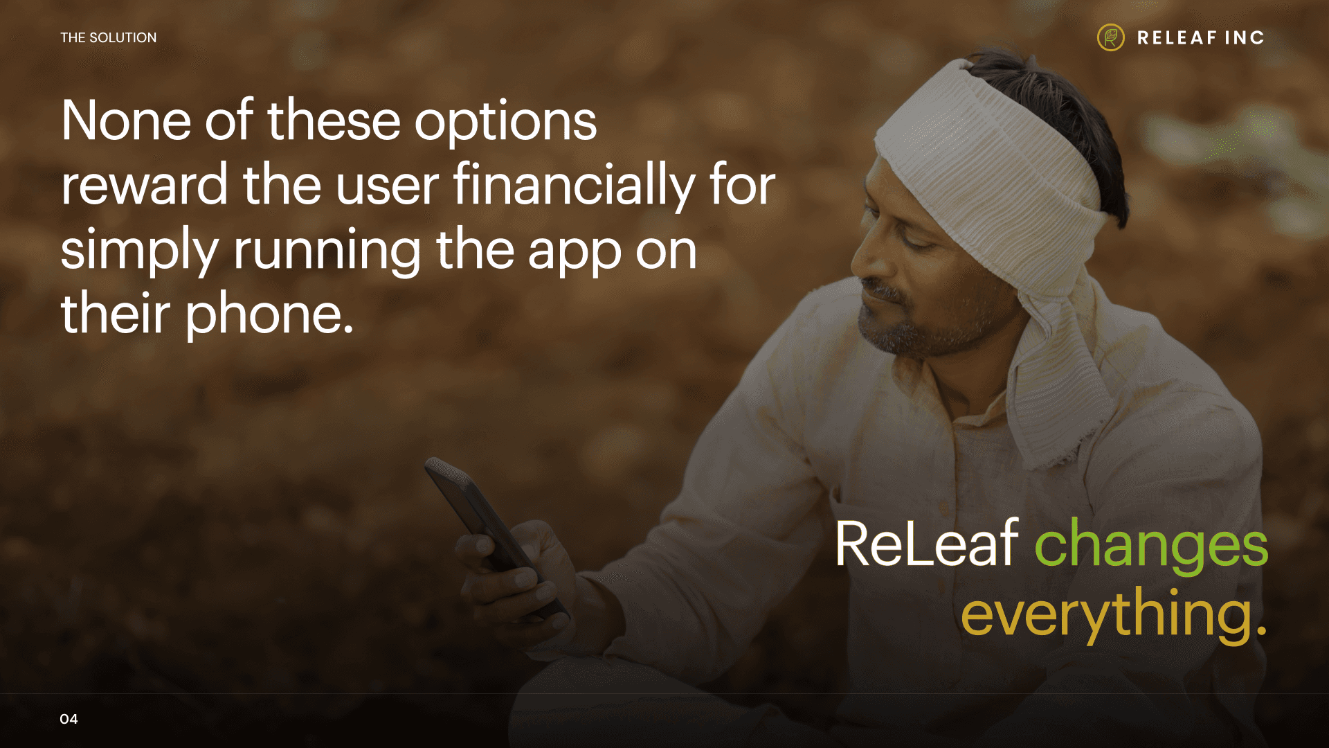 Pitch deck design for Releaf, focused on clear storytelling and investor-ready visuals.