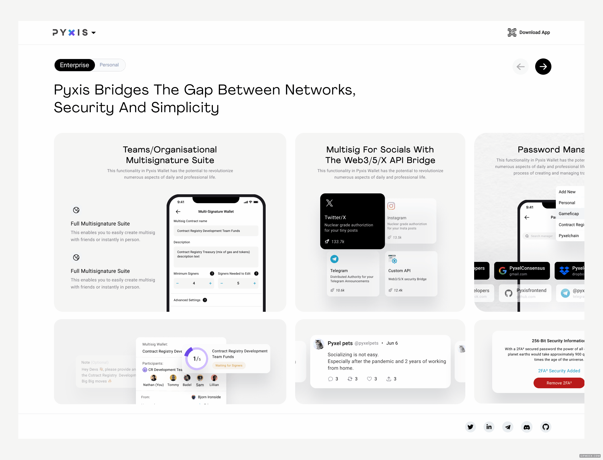 Landing page design for the Pyxis wallet, focused on clearly communicating secure and intuitive digital asset management.