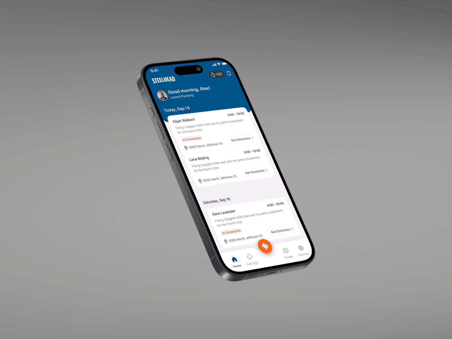 Branding and UX design for Steelhead, an AI-assisted scheduling App for service-based workers; designed to simplify booking, reduce no-shows, and save time via smart calendar automation.