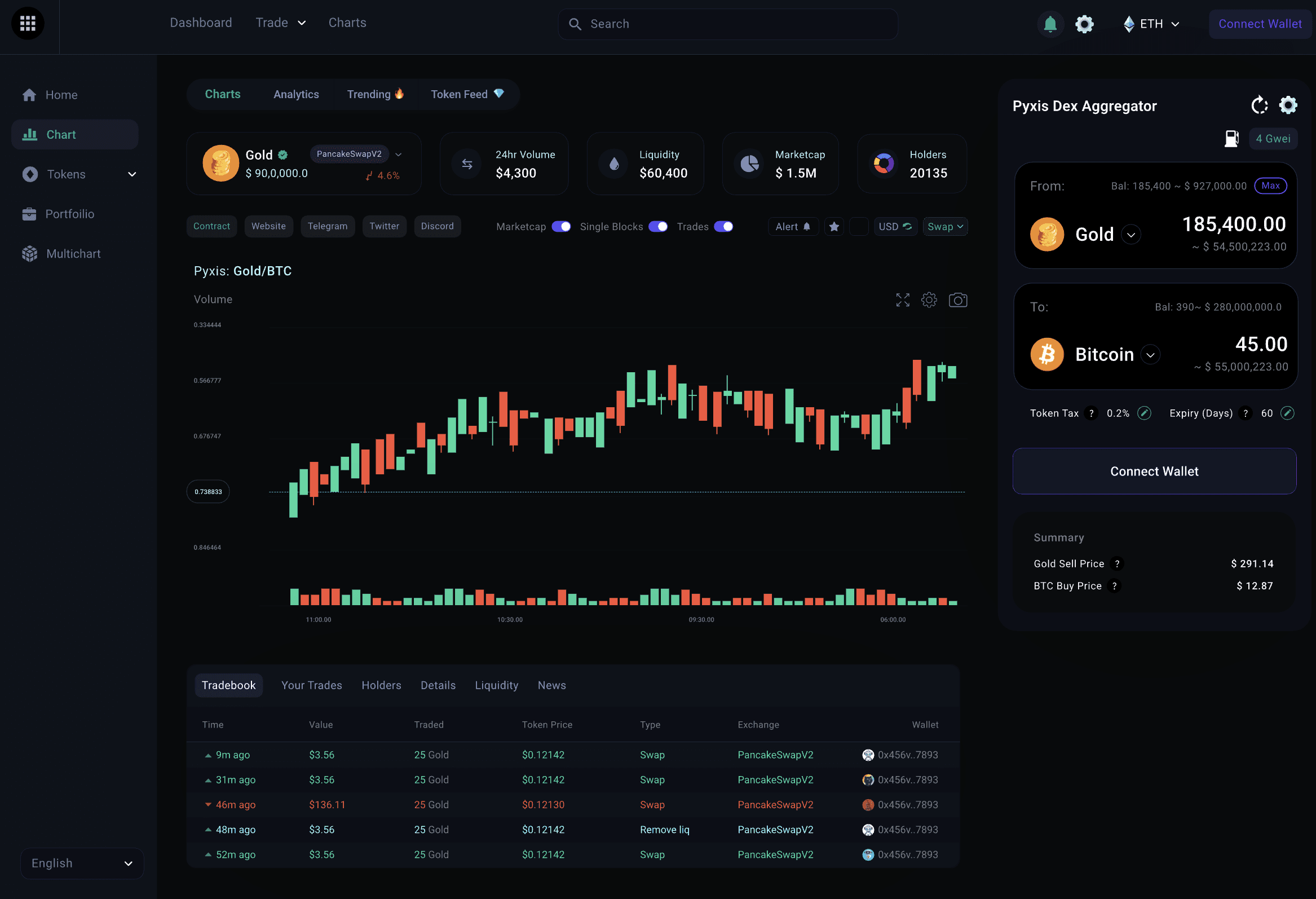UX design for the Pyxis DEX aggregator, focused on market visibility, trading flows, and real-time insights.