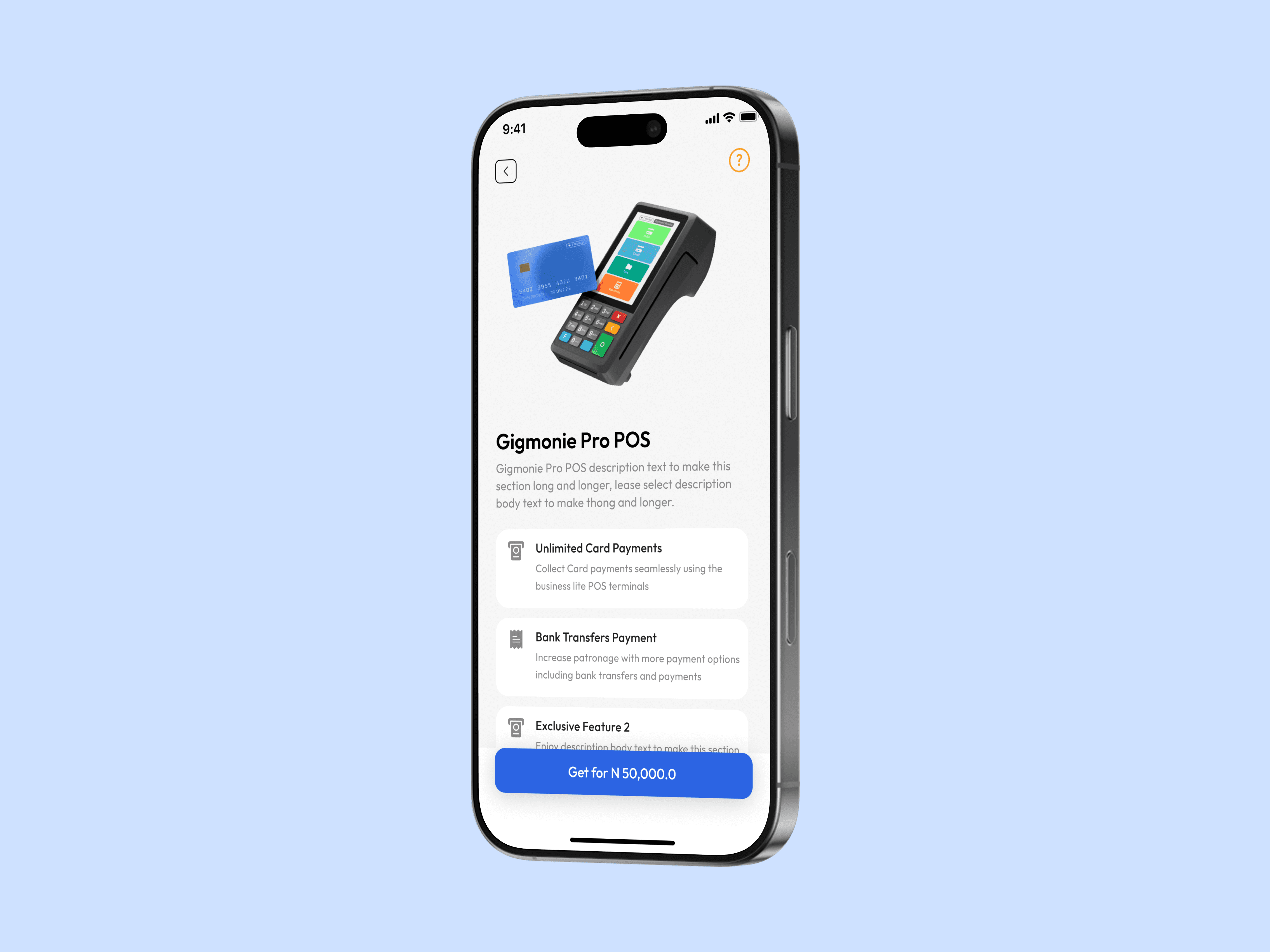 Product design work on the Gigmonie app, improving everyday money management for businesses.