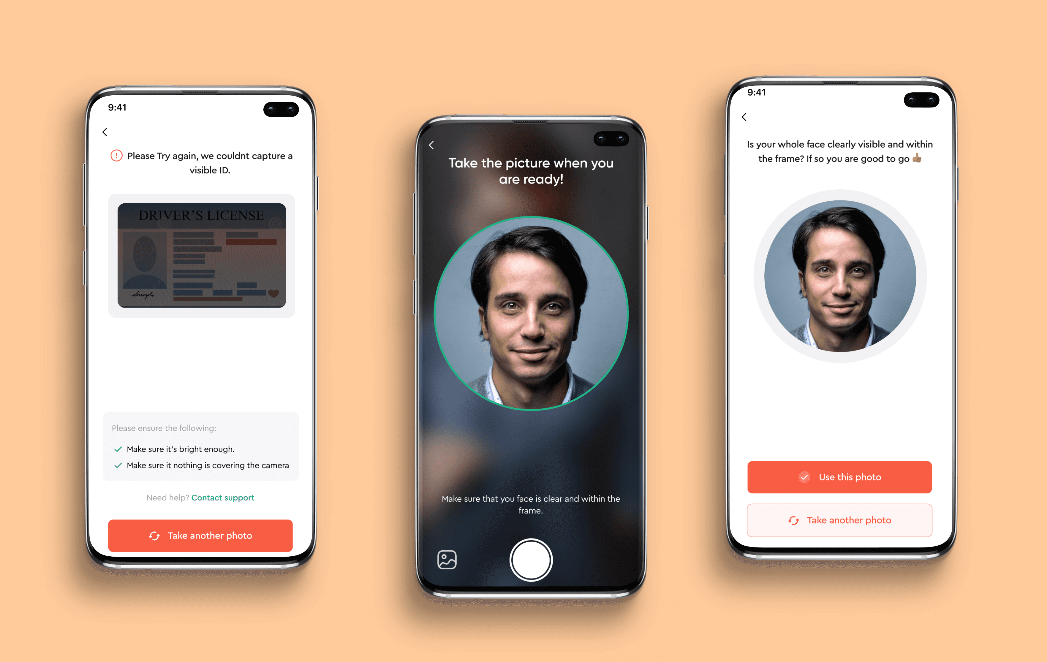 Identity verification integrated seamlessly: Document upload, Selfie verification and Minimal cognitive load