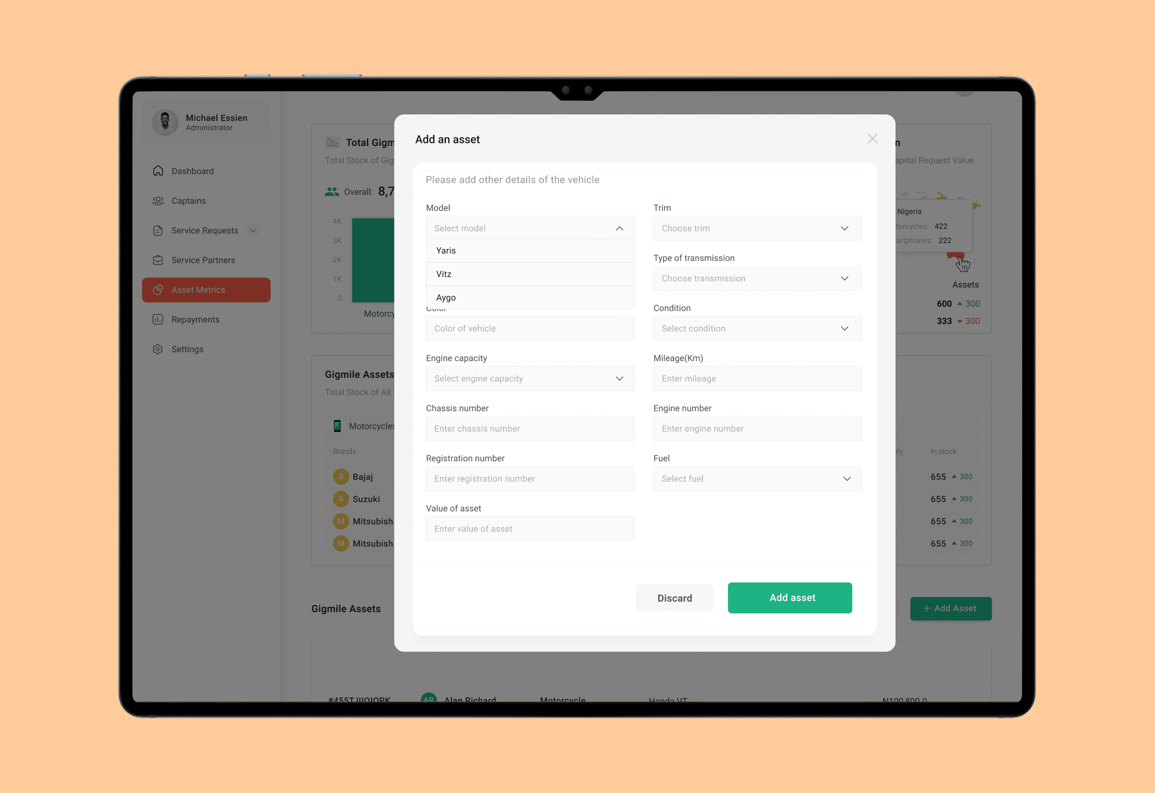 Monitor asset inventory (in stock vs in field)