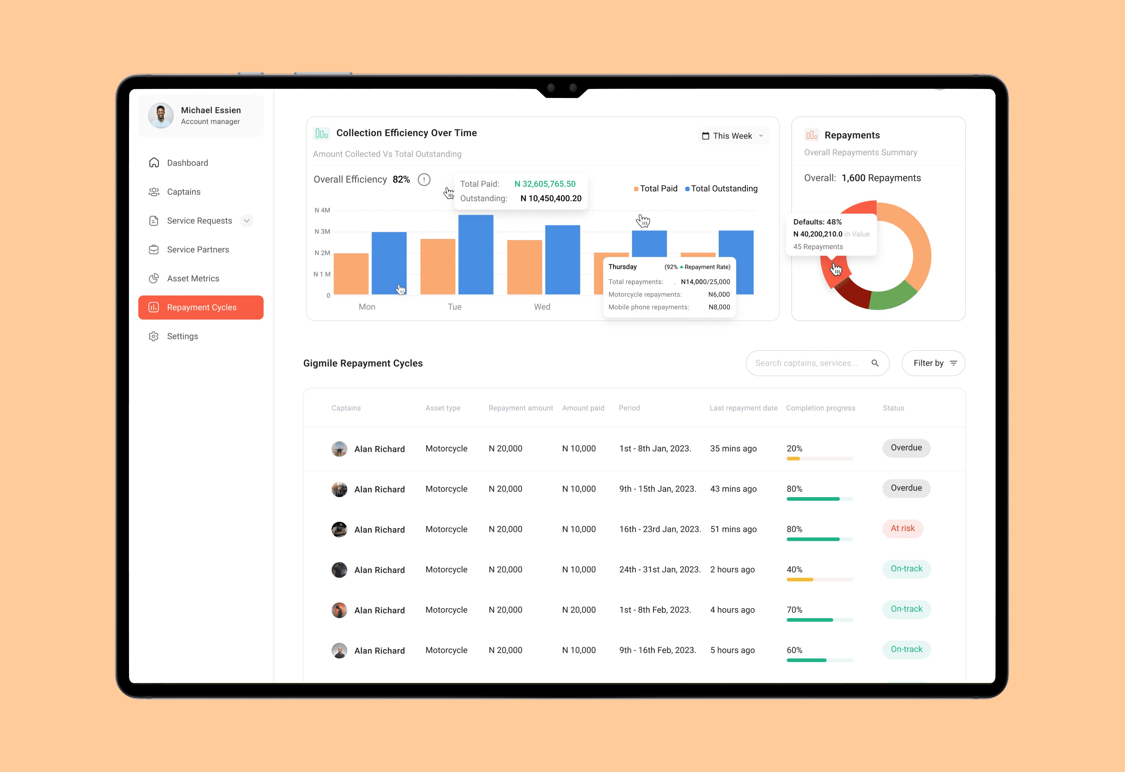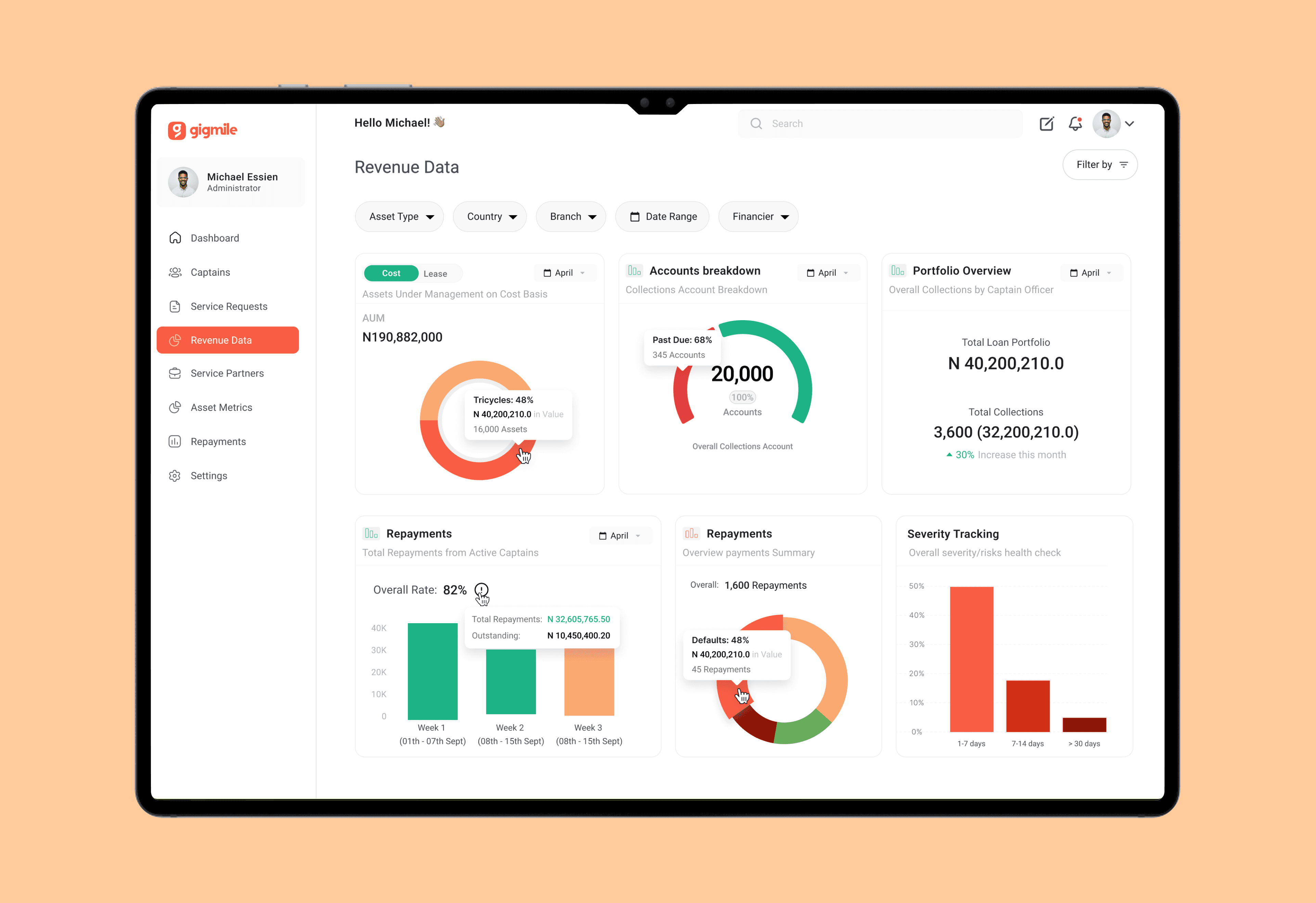 Revenue data managed by account managers, overseeing the platform's portfolio and overall repayemnts