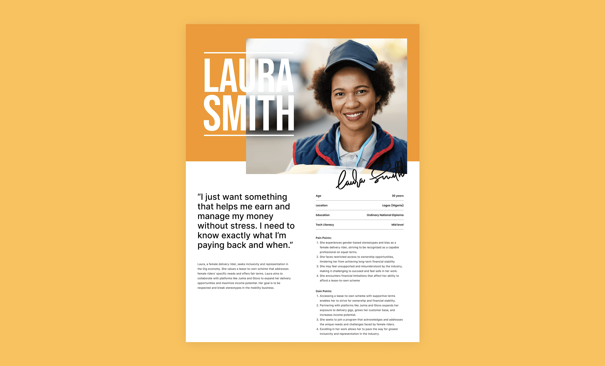 "Choice nailed it right from the beginning. She perfectly balanced what the captains need in a super simple mobile app with everything we require on the backend to manage credit risk, repayments, and asset tracking, and her thoughtful approach made scaling the whole platform feel manageable and way less chaotic."