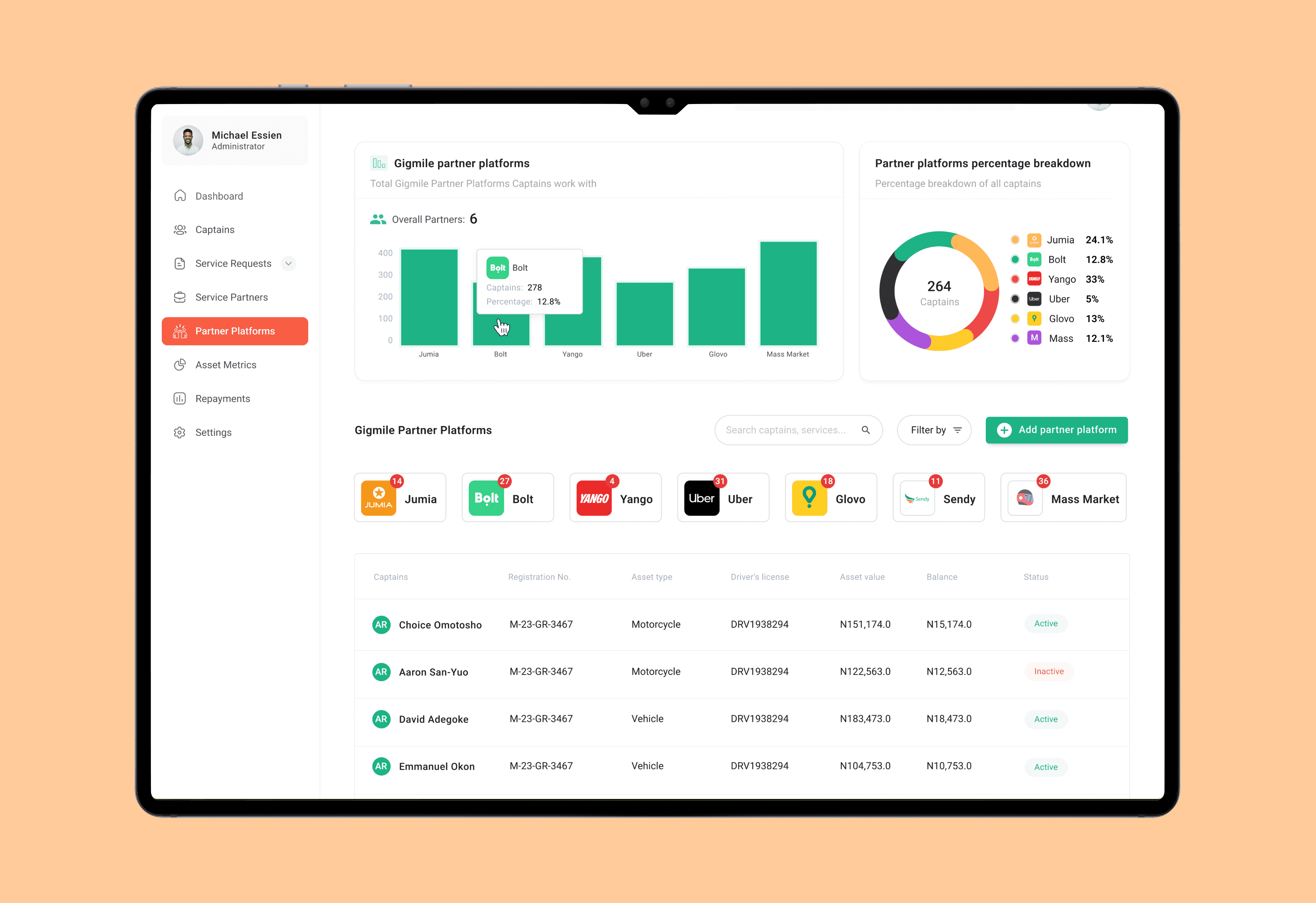 Manage Captains, requests and service partners